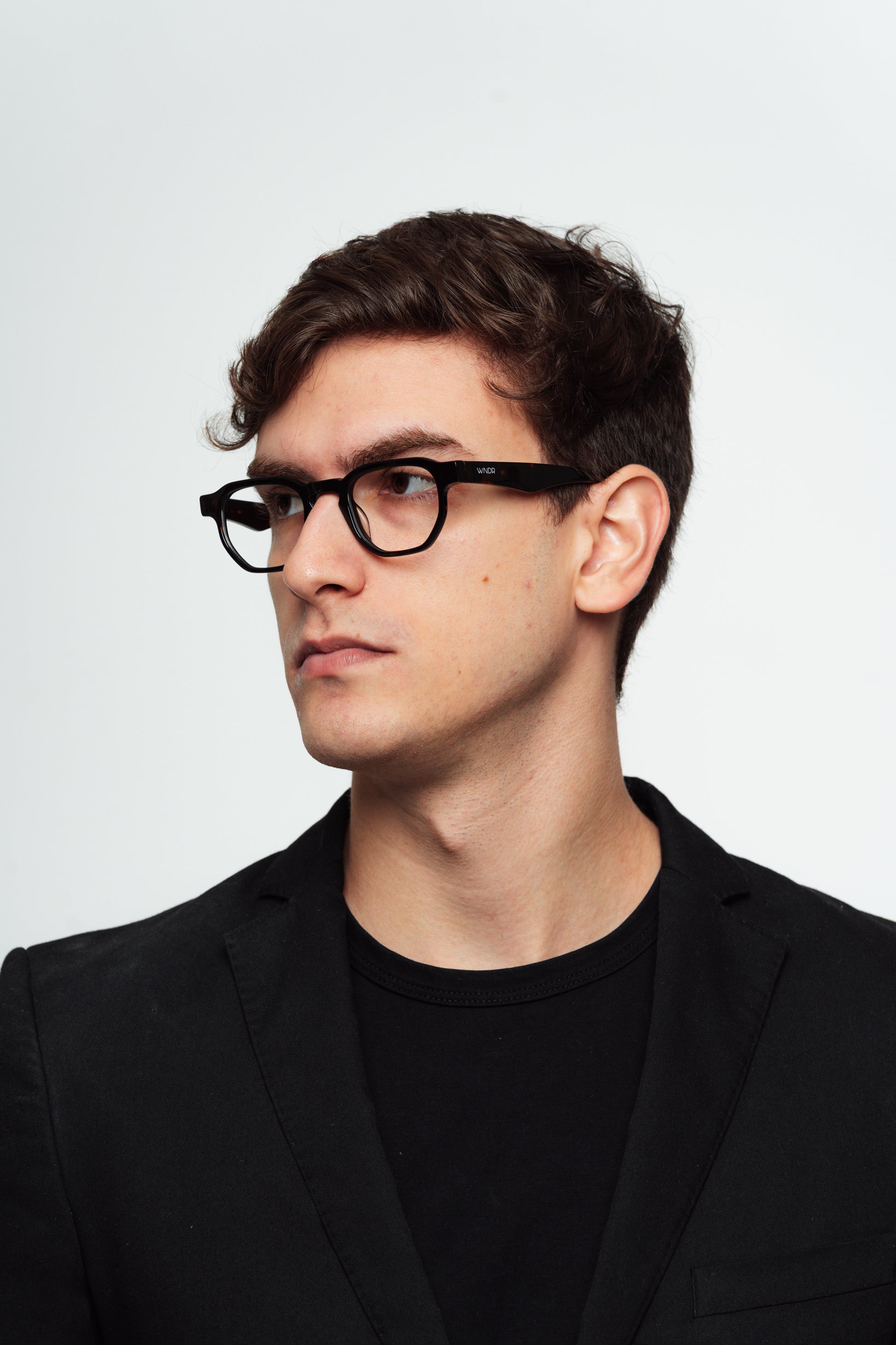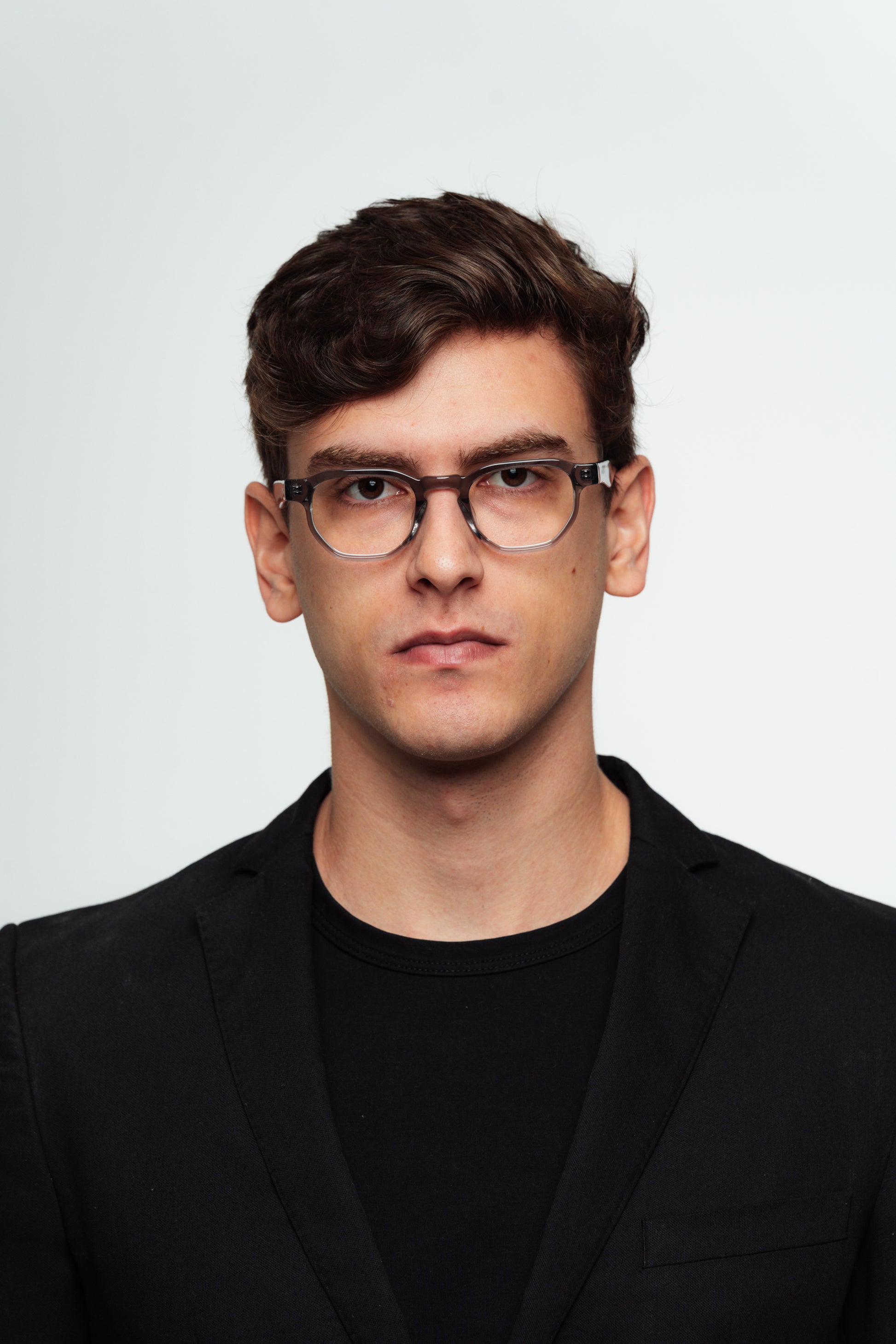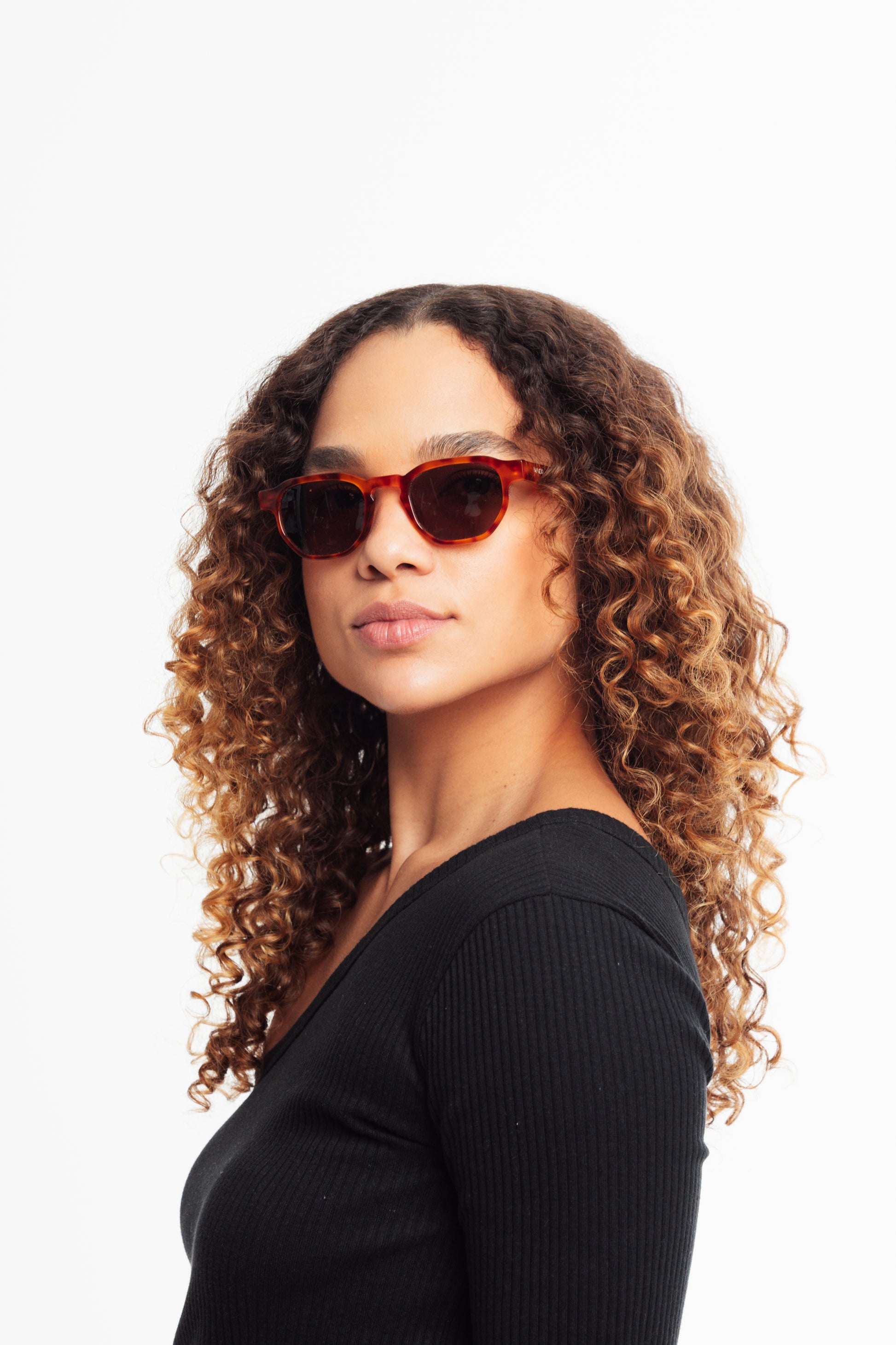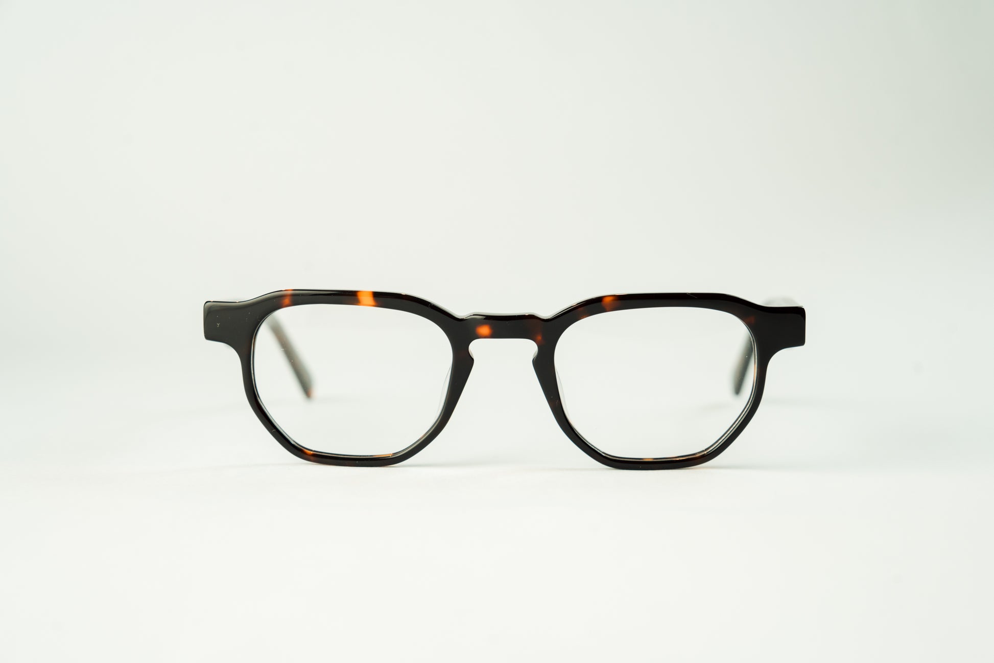 Armação média com parte superior hexagonal e base hexagonal. Se encaixa melhor em rostos médios.