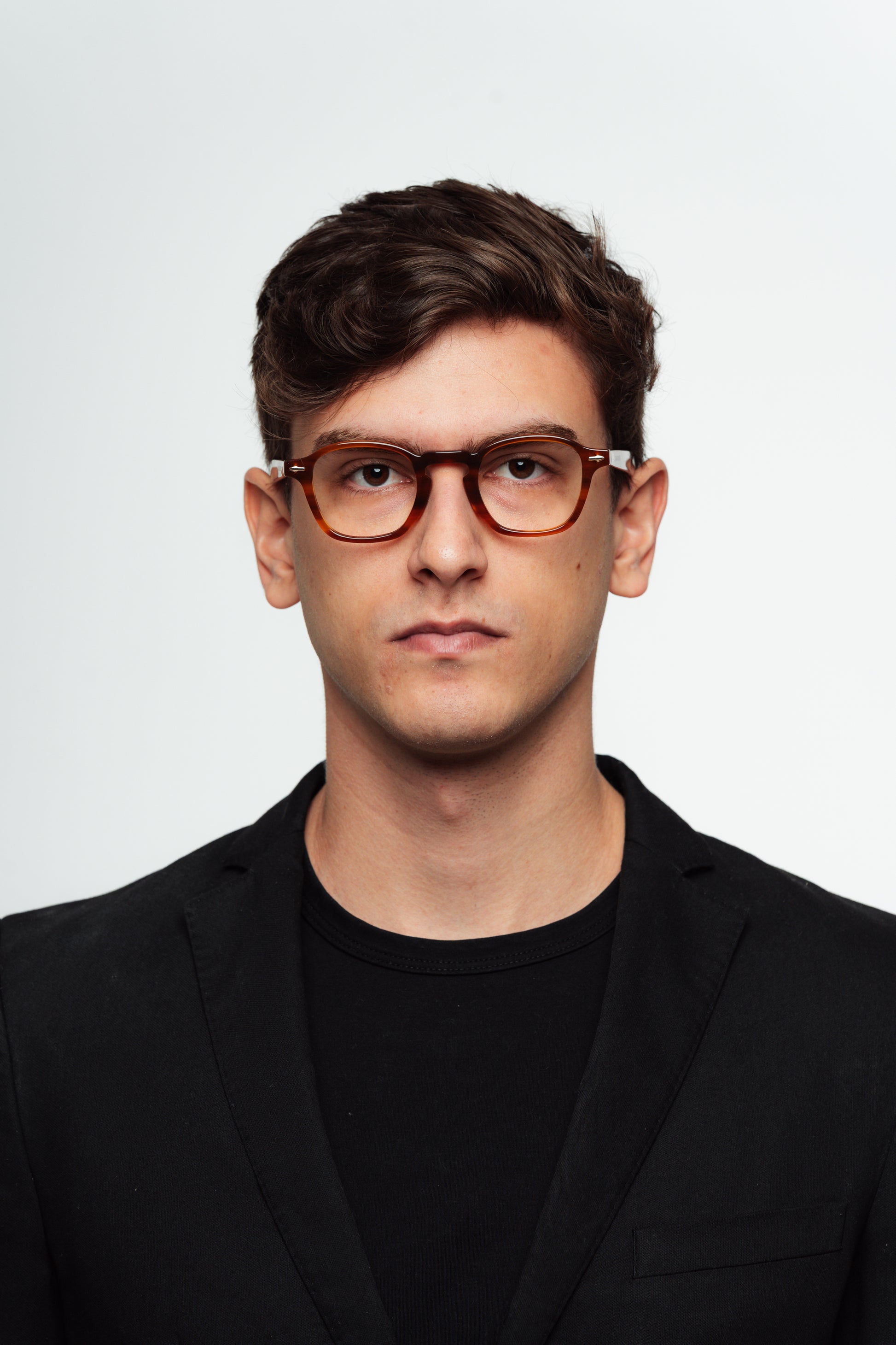 Armação média de extremidades retas com bordas ovais. Veste bem rostos médios e largos.
