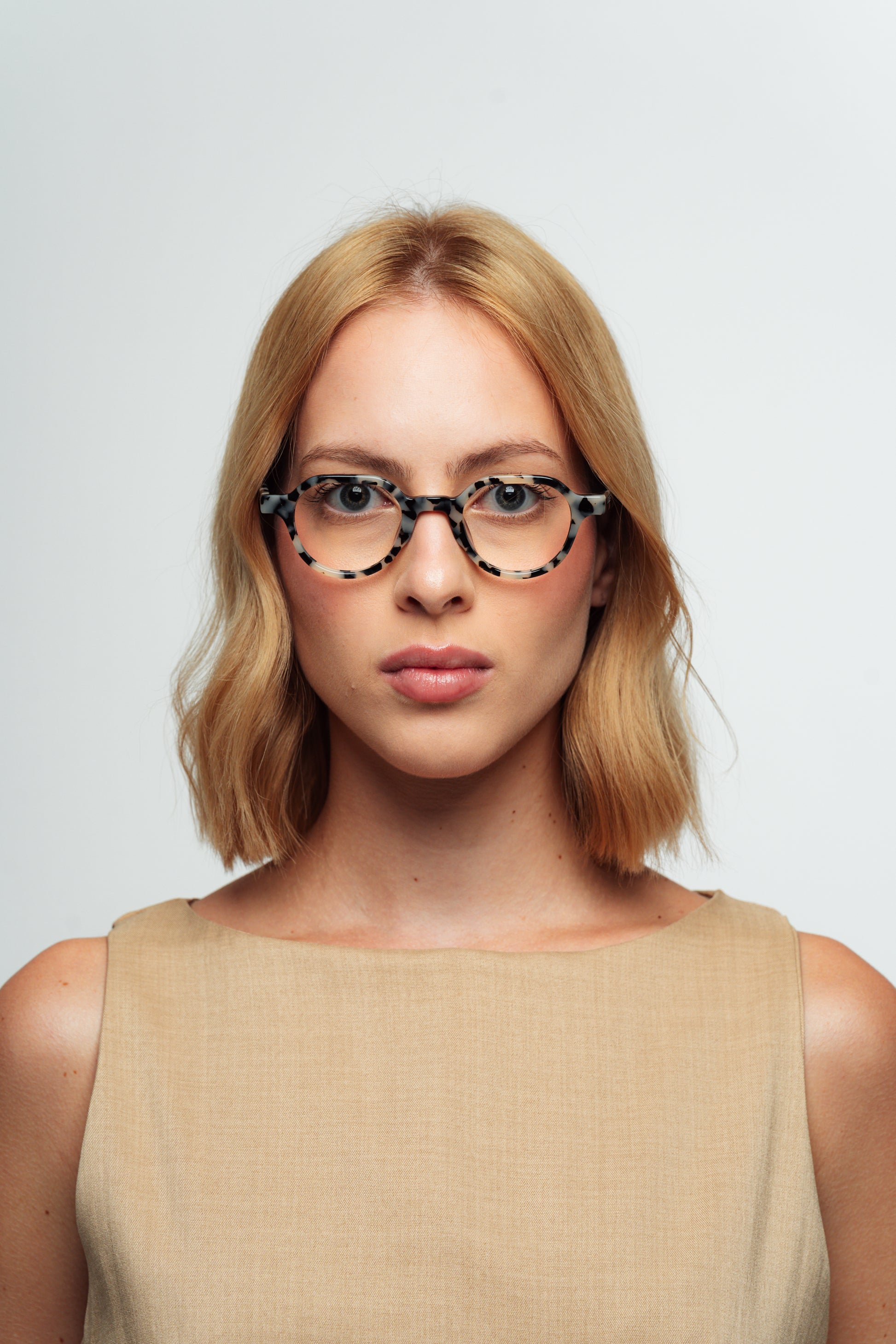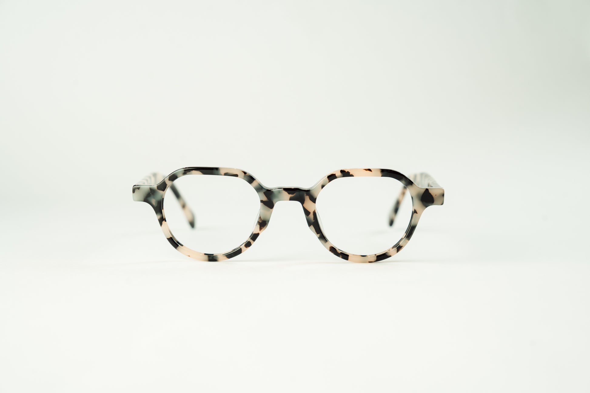 Armação pequena/média com base arredondada e parte superior hexagonal. Veste bem rostos pequenos e médios.