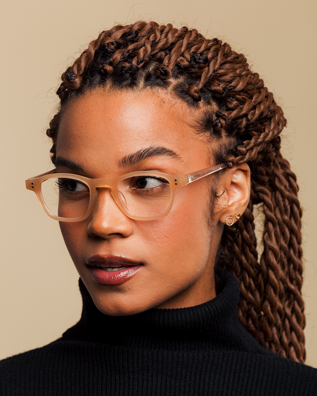 O Dom é um modelo retangular clássico, com design horizontal e delicado que realça os traços do rosto. Leve e elegante, ele combina o charme atemporal com um toque moderno.